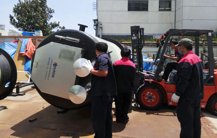 大家心往一處想力往一處使,僅使用了20多分鐘就把寶山項(xiàng)目的這一泵站與配套設(shè)施裝車(chē)完畢,裝車(chē)完畢后,井然有序的對(duì)泵站再次進(jìn)行檢查。此次寶山項(xiàng)目其實(shí)是有三臺(tái)泵站的,按照客戶(hù)要求先發(fā)一臺(tái)過(guò)去。