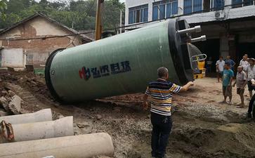 地埋式一體化提升泵站安裝前需進行水泥基板表面的清潔,確保安裝面和預制泵站底部之間沒有泥土等雜物。用起重掉鉤吊起一體化提升泵站,放在水泥基板上的地腳螺絲圓周中間。
